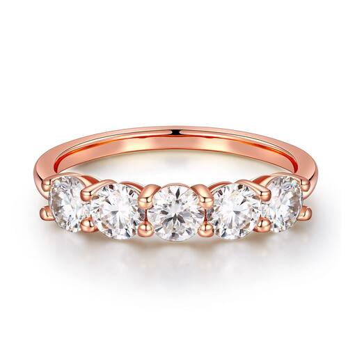Design: um anel de aniversário de moissanita de 5 pedras brilhante projetado com cinco 3,75 mm redondo D Color VVS1 Clarity Lab Criada outras pedras Moissanite em uma configuração de pinos compartilhados, o anel de casamento de prata esterlina S925 sólido em ouro branco 14K é confortável o suficiente para expressar seu amor todos os dias, seja deslumbrante sozinho ou empilhado com seus favoritos. >