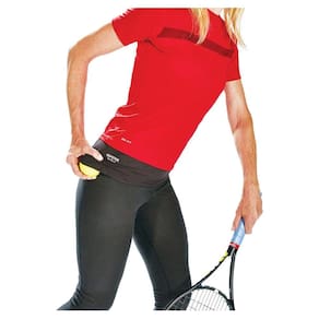 - A faixa de bola hipster cabe sobre seus shorts, calças ou saia para armazenar até duas bolas extras