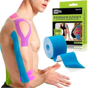 Bandagem Elástica Fita Adesiva Academia 5 Mt Crossfit Azul Bandagem elástica adesiva foi desenvolvida para quem busca realizar suas atividades físicas com mais segurança e conforto, diminuindo o risco de lesões típicas das partidas de futebol, vôlei, basquete, tênis, e até mesmo das corridas e caminhadas do dia-a-dia e ainda para aqueles casos em que a lesão está em recuperação e que por autorização médica pode ser praticada, pois com a bandagem a segurança é comprovada. Ela age como reforço muscular, auxilia na recuperação de lesões, inchaço, mantém a temperatura ajudando a circulação linfática. As fotos do anuncio mostram exemplos de posicionamento da fita em alguns músculos, mas na internet é possível encontrar vídeos explicando diversas formas de uso.A fita é aplicada com diversos objetivos: - diminuir a dor e a sensação de desconforto; - promover suporte durante a contração muscular; - diminuir a congestão do fluxo linfático; - diminuir o extravasamento sanguíneo para o subcutâneo; - ajudar na correção de desvios articulares; - promover auxílio na contração muscular. Ações e benefícios: - fácil aplicação - resistente à água, pode ser usada durante o banho e em qualquer atividade aquática - dura entre 3 a 4 dias se aplicada corretamente - ondas para a circulação do ar - espessura leve como a da pele Contra indicações: - não aplicar sobre tecidos frágeis ou em fase de cicatrização - não aplicar sobre regiões com atividade maligna ca - não aplicar sobre infecções ativas- não aplicar em caso de alergia a polímeros derivados do petróleo. Cuidados especiais: - não realizar a aplicação sem a orientação de um profissional qualificado - em caso de irritação, finalizar a aplicação imediatamente. Dados técnicos: - tamanho 5cm x 5 metros - Itens inclusos:- 01 rolos de bandagem elástica adesiva 5 centímetros largura x 5 metros comprimento ; Especificações técnicas: Garantia de fábrica: 30 dias. Ean: 7893524150411