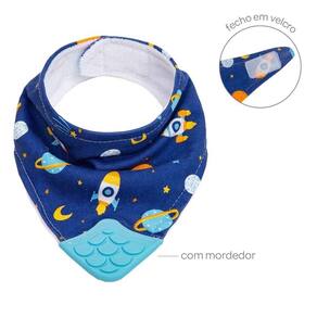 Bandana baby com mordedor espaço buba cor: azul bandana baby com mordedor espaço buba