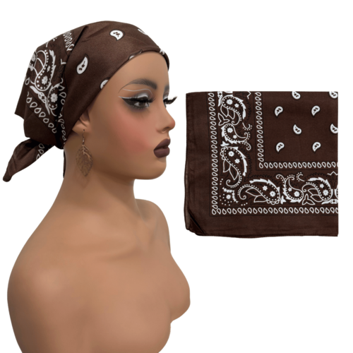 Bandana estampada em poliéster de 50cm x 50cm, ideal para complementar o estilo no dia a dia. Versátil e unissex, pode ser usada por pessoas de todas as idades em diferentes ocasiões.