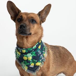 Bandana Limone Confeccionada em linho misto com viscose, possui acabamento desfiado e estampa exclusiva, pode ser Utilizado sozinha ou com outras peças de roupa proporcionando uma maior proteção ao seu pet além de deixá-lo bem vestido mesmo no calor. Modelagem de triângulo exclusiva Zampe. Verifique AQUI a medida ideal para o seu Pet.