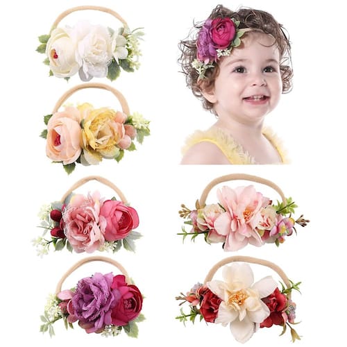 -?PERFEITAS PARA VÁRIAS OCASIÕES?- Essas lindas bandanas de flores podem ser usadas em diferentes ocasiões, por exemplo, batismo, festa de aniversário, feriado, Natal, vida diária ou como adereços fotográficos quando você tira fotos para seu doce anjo. O pacote inclui 6 faixas de cabeça, como mostra a foto na boa embalagem.