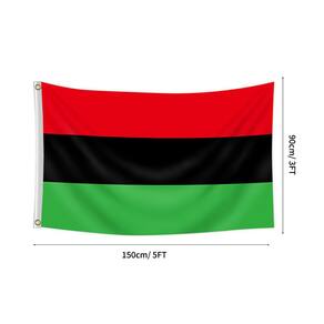 Material: poliéster Tamanho: 150 cm × 90 cm Peso: 120 g Tecido de poliéster de alta qualidade: feita de poliéster durável, esta bandeira foi projetada para manter suas cores vibrantes e resistir às condições climáticas externas. Cores ousadas e simbólicas: apresenta listras vermelhas, pretas e verdes, simbolizando a herança, o orgulho e a união afro-americanos. Perfeito para eventos culturais: ideal para celebrações do Mês da História Negra, do século XIX ou como peça decorativa para sua casa, escritório ou jardim. Fácil de exibir: inclui ilhós de metal para pendurar com segurança e facilidade em mastros, paredes ou cercas. Nenhum mastro de bandeira incluído: a bandeira é vendida sem mastro, oferecendo flexibilidade para exibi-la como você preferir, em ambientes internos ou externos.