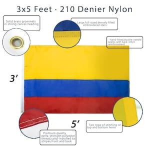 - Especificação - Importada. Feito de 100% nylon. O pacote contém uma bandeira de nylon Anley 3x5 Ft Everstrong da série Heavy Duty Colombia.