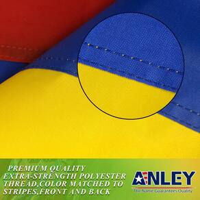 Importado. Feito de 100% nylon. O pacote contém uma bandeira de nylon ANLEY de 3x5 pés Heavy Duty Colombia.