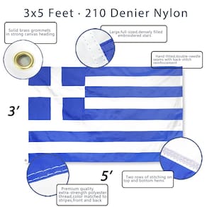- Especificação - Importada. Feito de 100% nylon. O pacote contém uma bandeira de nylon Anley 3x5 Ft Everstrong da série Heavy Duty Greece.