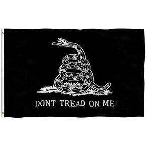 Importado. Feito de 100% poliéster. O pacote contém uma bandeira preta Don't Tread On Me de 0,8 x 1,5 m.