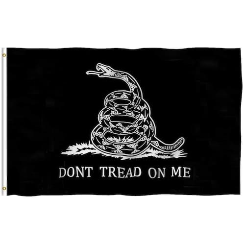 - Especificação - Importado. Feito de 100% poliéster. O pacote contém uma bandeira preta "Don't tread on me" de 9 x 1,5 m.