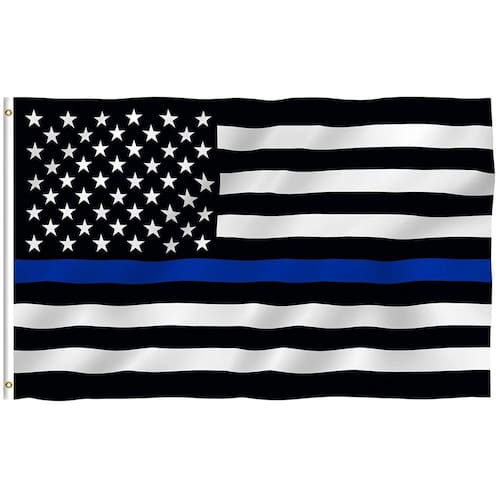 Bandeira dos EUA Anley Fly Breeze, linha azul fina de 3 x 5 pés de espessura — Cor vívida e à prova de desbotamento — Cabeçalho de lona e costura dupla — Bandeiras homenageando policiais, bandeiras de poliéster com ilhós de latão