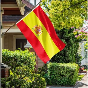Material: poliéster Tamanho: 150 cm × 90 cm Peso: 100 g Design da bandeira espanhola: apresenta as ousadas listras vermelhas e amarelas da bandeira nacional espanhola, completas com o brasão espanhol para um visual clássico e patriótico. Material de poliéster durável: feita de poliéster de alta qualidade, esta bandeira foi projetada para resistir às condições externas e permanecer vibrante e durável. Perfeito para uso externo: ideal para eventos ao ar livre, como partidas esportivas, feriados nacionais e festivais, bem como displays internos para mostrar apoio à Espanha. Tamanho grande: mede 150 x 90 cm, o que o torna perfeito para pendurar em jardins, mastros ou em eventos para uma ampla exibição. Decoração versátil: adequada para exposições domésticas, de escritório ou públicas, trazendo um toque da herança da Espanha a qualquer espaço.