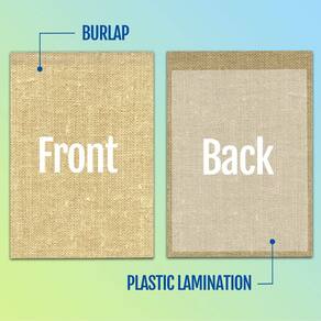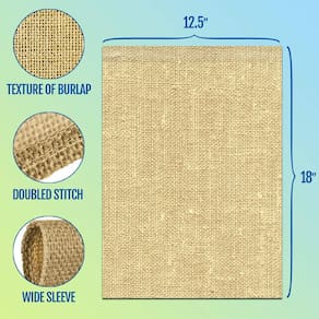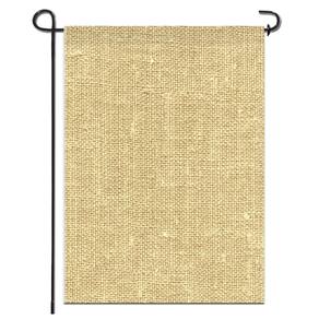 - Estopa l — Feita de juta 100% l com a parte traseira laminada, rígida, mas não cheirosa. A bandeira mede aproximadamente 18" x 12" e com manga de 1-1/2" para pendurar.