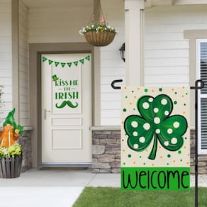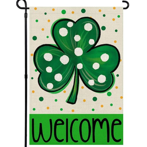 - DECORAÇÃO DE CASA: Bandeira de jardim com design de trevos e bolinhas, perfeita para qualquer deck, quintal, pátio, alpendre ou varanda. Marque uma aparência encantadora para qualquer quintal, gramado ou jardim.