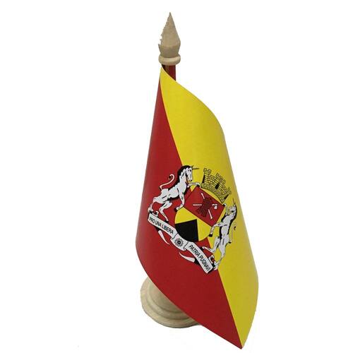 Bandeiras de mesa com mastro de madeira, excelente qualidade e acabamento. Ideais para decoração, reuniões e presente. Dimensões: Altura do mastro: 30 cm Base: 3,5 cm de diâmetro Bandeira: 19 cm de comprimento x 13 cm de largura Mastro: madeira de reflorestamento Bandeira impressa em alta definição em papel couchê de alta gramatura Impressa frente e verso Marca: Mundo Das Bandeiras