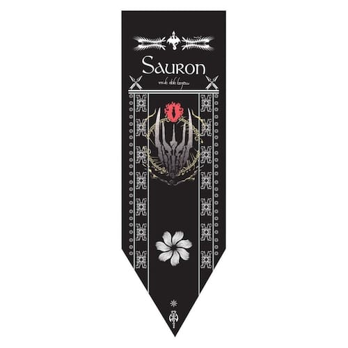 A Bandeira Flâmula Sauron traz a representação sombria e icônica do Senhor do Escuro, figura central da saga O Senhor dos Anéis. Sauron foi o grande antagonista da Terra-média, mestre do Um Anel e responsável por eventos que moldaram as Segunda e Terceira Eras, até sua queda definitiva com a destruição do Anel.