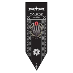 A Bandeira Flâmula Sauron traz a representação sombria e icônica do Senhor do Escuro, figura central da saga O Senhor dos Anéis. Sauron foi o grande antagonista da Terra-média, mestre do Um Anel e responsável por eventos que moldaram as Segunda e Terceira Eras, até sua queda definitiva com a destruição do Anel.