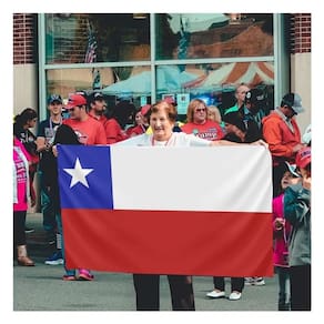 Características da bandeira chilena - Material: tecido 100% poliéster - Dimensões: 60 x 90 centímetros - Costuras reforçadas - Estrela bordada - Com fita de reforço. -Ilhós metálicos e costuras duplas. O pacote inclui: 1-Bandeira do Chile 60x90 cm