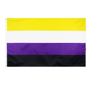 Material: poliéster Tamanho: 150 cm × 90 cm Peso: 100 g Design não binário vibrante: apresenta as icônicas listras amarelas, brancas, roxas e pretas que representam a bandeira do orgulho não binário, promovendo visibilidade e apoio à comunidade não binária. Material de alta qualidade: feita de 100% poliéster durável, esta bandeira é resistente ao desbotamento, à prova de intempéries e adequada para uso externo e interno. Perfeito para eventos do Pride: ideal para celebrar o orgulho não binário em desfiles, comícios ou eventos culturais, ou como uma decoração significativa para sua casa, escritório ou jardim. Fácil de exibir: mede 3x5 pés (90x150 cm) e inclui ilhós de metal para facilitar a suspensão. Mastro de bandeira não incluído. Ótimo para todas as ocasiões: mostre seu apoio à comunidade não binária durante o Mês do Orgulho, eventos LGBTQ+ ou celebrações diárias de identidade e inclusão.