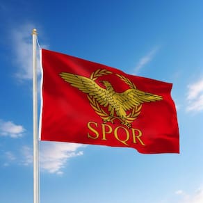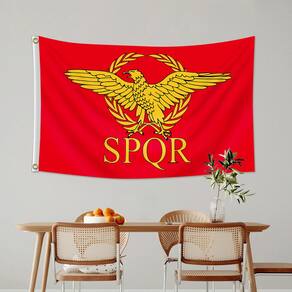 Material: poliéster (pongee) Tamanho: 150 cm × 90 cm Peso: 120 g Apresenta o icônico emblema SPQR do Império Romano, com uma águia dourada e coroa de louros em um fundo vermelho vibrante, representando o Senado e o Povo de Roma. Feito de tecido de poliéster de alta qualidade para durabilidade e resistência ao desbotamento, perfeito para exibições internas e externas. Mede 90 x 150 cm, o que o torna ideal para pendurar em jardins, eventos com temas históricos ou como parte de sua decoração inspirada no Império Romano. Equipado com ilhós de latão para facilitar a suspensão, sem mastro incluído, adequado para várias opções de exibição. Perfeito para fãs de história, entusiastas do Império Romano ou qualquer pessoa interessada em bandeiras exclusivas de estilo vintage para decoração de casa ou evento.