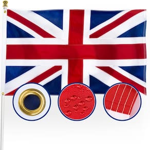Tamanho: 3x5 FT Material: Nylon 210D de alta qualidade Quantidade: 1 bandeira/saco Impressão: Cor viva, resistente ao desbotamento, listras costuradas Qual é a origem da bandeira britânica? A bandeira Union Jack consiste na cruz vermelha de São Jorge (padroeiro da Inglaterra), com bordas brancas, sobreposta ao saltire de São Patrício (padroeiro da Irlanda), também com bordas brancas, que são sobrepostas ao sal de Santo André (padroeiro da Escócia). Qual é a qualidade da nossa bandeira do Reino Unido Reino Unido? Construído com nylon 210D para suportar qualquer clima (chuva, neve e luz do sol). O material resistente selecionado prolonga a vida útil da bandeira por impermeabilidade, resistência ao desbotamento, proteção UV, seca rapidamente Cabeçote feito de lona com ilhós de latão verdadeiro pode ser forte o suficiente para durar a bandeira. Quatro fileiras de costura no cabeçalho e na bainha da braguilha evitam desgaste e rasgos Qual é a garantia incluída? Acreditamos que você vai adorar esta bandeira e prometemos um serviço "120 dias de garantia - sem perguntas". Por algum motivo você não está satisfeito, sinta-se à vontade para entrar em contato conosco. - ?Material de luxo?Nossa bandeira da British Union Jack de 9 x 5 pés é construída com material pesado de nylon 210D para suportar qualquer clima (chuva, neve e luz do sol). O material resistente selecionado prolonga a vida útil da bandeira por impermeabilidade, resistência ao desbotamento, proteção UV, seca rapidamente - ?Artesanato de qualidade?O cabeçalho feito de lona resistente com ilhós de latão verdadeiro à prova de ferrugem pode ser forte o suficiente para durar a bandeira. Quatro fileiras de costura no cabeçalho e na bainha da braguilha evitam desgaste e rasgos - ?Aparência excepcional?Listras costuradas feitas fazem a bandeira, a cor tradicional vívida e brilhante atrai a atenção das pessoas e todos sentirão profundamente dentro da alma que "tenho orgulho do Reino Unido" - ?Bandeira obrigatória?A bandeira do Reino Unido da Inglaterra é um símbolo ideal para voar e um excelente presente para familiares e amigos. Você pode mostrar seu orgulho enquanto expressa seu amor em seu mastro ou pendurá-lo na parede para celebrações nacionais em casa, escritório, estradas e ao ar livre - ?100% de garantia?Garantimos nossa bandeira britânica britânica e tentamos o nosso melhor para controlar os detalhes de cada artesanato estritamente e garantir até mesmo alta qualidade. "Garantia de 120 dias - Sem perguntas" é oferecido para você