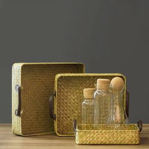 Esta bandeja é confeccionada em fibra vegetal (alga marinha), uma matéria prima ecológica e resistente. Possui alças sintéticas para maior segurança e firmeza ao manuseá-la.