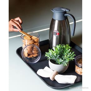 Feita em material resistente, a bandeja suporta o peso de itens variados, sendo durável e fácil de limpar.