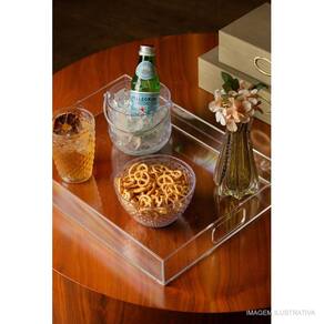 Feita em material resistente, a bandeja suporta o peso de itens variados, sendo durável e fácil de limpar.