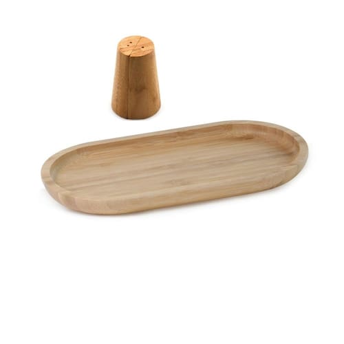 Bandeja Bambu com Saleiro e Pimenteiro - Design Moderno