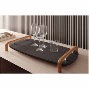 Bandeja Barcelona Decorativa Preto Com Detalhes Em Metal Cromado