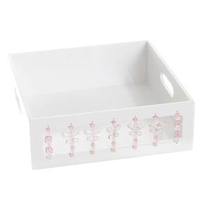 Organizese com essa bandeja confeccionada, especialmente, para levar praticidade e versatilidade para as mamães e com muito estilo. Afinal toda a magia da ambientação se manifesta através desses toques decorativos, que não podemos abrir mão Dados Técnicos Bandeja em madeira MDF pintura laqueada e decoração em acrílico. Medidas Largura: 28 cm Comprimento: 28 cm Altura: 9,5 cm