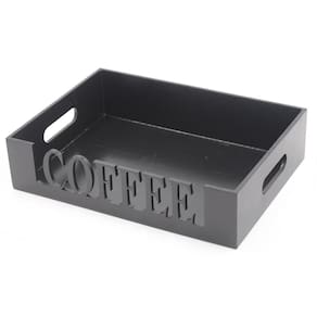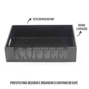 Bandeja cafe coffee café decoração 35x25 madeira mdf Cor: preto Bandeja versátil e multiuso coffee: Feita em mdf de 6mm, ela é ideal para organizar e decorar o seu cantinho especial do café, servir um cafezinho para os amigos, organizar papeis de escritório entre diversas outras utilidades.