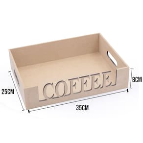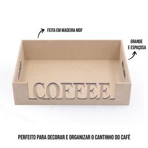 Bandeja cafe coffee café decoração 35x25 madeira mdf Cor: cru Bandeja versátil e multiuso coffee: Feita em mdf de 6mm, ela é ideal para organizar e decorar o seu cantinho especial do café, servir um cafezinho para os amigos, organizar papeis de escritório entre diversas outras utilidades.