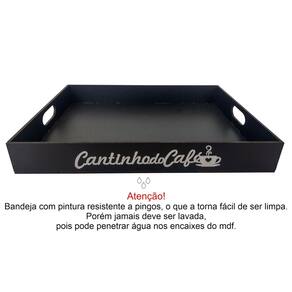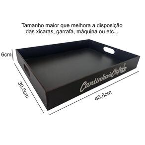 A bandeja ideal para organizar seu cantinho do café, feita em mdf com tamanho maior de 40,5cmx30,5cm deixando suas xícaras, garrafa, máquina ou etc... Melhores dispostas. Com seu grande diferencial que é a pintura impermeável ela é resistente a pingos é só passar um pano úmido ou papel que sai facilmente. Através de seu letreiro 3d em acrílico confere um aspecto mais fino e elegante.