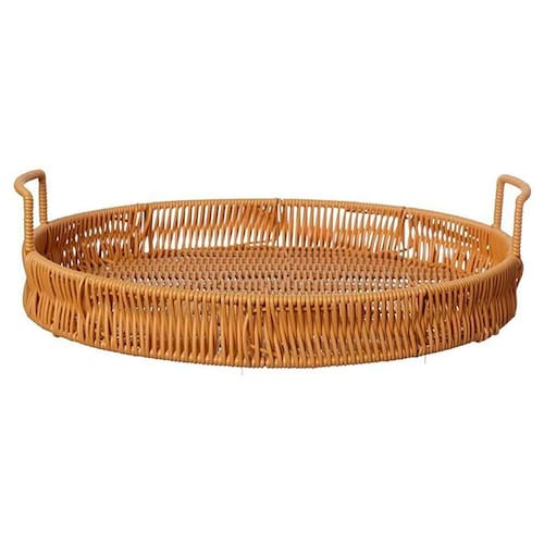 BANDEJA REDONDA COM ALÇA AUTUM de polipropileno de fácil limpeza e higienização. Peça multiuso para organizar e decorar Na cozinha, banheiro use bandejas na decoração Fácil higienização.