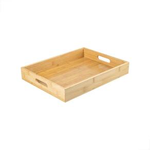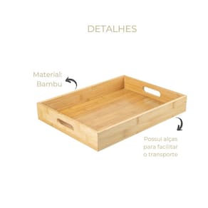 A Bandeja Retangular De Madeira E Bambu Com Alça Para Servir é perfeita para transformar a experiência de servir em sua casa. Feita com bambu, um material 100% renovável e sustentável, essa bandeja traz praticidade e elegância para o transporte de alimentos.