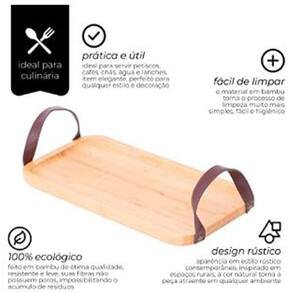 PRÁTICO E MULTIUSO: Ideal para servir petiscos, cafés, chás, água e lanches. Item elegante, perfeito para qualquer estilo e decoração. Para quem busca inspiração para decorar, unir o rústico e o tropical é uma proposta bastante atraente.