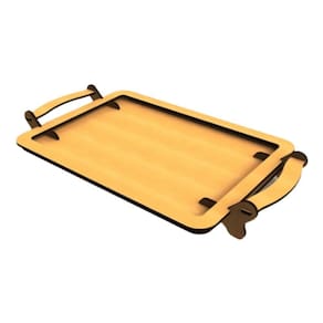 Bandeja Com Suporte Lateral Em Mdf Material MDF CRU 3 mm Formato Aplicado: Conforme a Imagem Formato Montado: 1 peça Comprimento: 18 cm Altura: cm Largura: cm Peso Aprox.: 650 gramas Acabamento: Corte a Laser sem pintura : Desmontada
