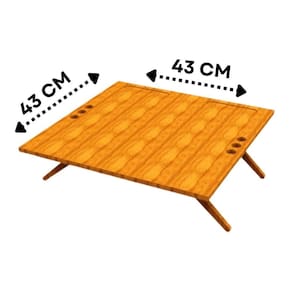 Bandeja Com Suportes Dobráveis Em Mdf Material MDF CRU 3 mm Formato Aplicado: Conforme a Imagem - Base de 40 cm x 40 cm Formato Montado: 1 peça Comprimento: 43 cm Altura: cm Largura: cm Peso Aprox.: 800 gramas Acabamento: Corte a Laser sem pintura : Desmontada