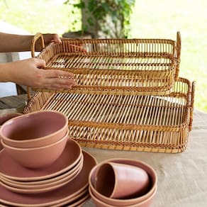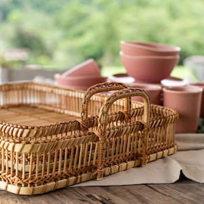 Bandeja Copa E Cia Bamboo Retangular Com Alças Bandeja Copa e Cia Bamboo Retangular com Alças - Características Gerais do Produto: - Composição: Rattan; Bambu - Detalhes: Peça Vendida de Forma Individual.; Design Exclusivo Copa&Cia.; As cores podem sofrer pequenas alterações de cor, variando de monitor para monitor.; Os objetos que ambientam as fotos não acompanham o produto.; As fotos produzidas são apenas como sugestão de uso com as demais peças da coleção. - Cuidados: Armazenar em local seco e arejado.; Limpar o Produto Apenas com Pano Levemente Umedecido; Evitar contato com objetos cortantes ou superaquecidos.; Não molhar; Não utilizar solventes, abrasivos ou alvejantes. - Dimensões (cm): Largura: 48 cm; Comprimento: 38 cm Acompanha o produto: - 1 Peça de Bandeja Garantia: - 7 dias/30 dias contra defeito de fabricação