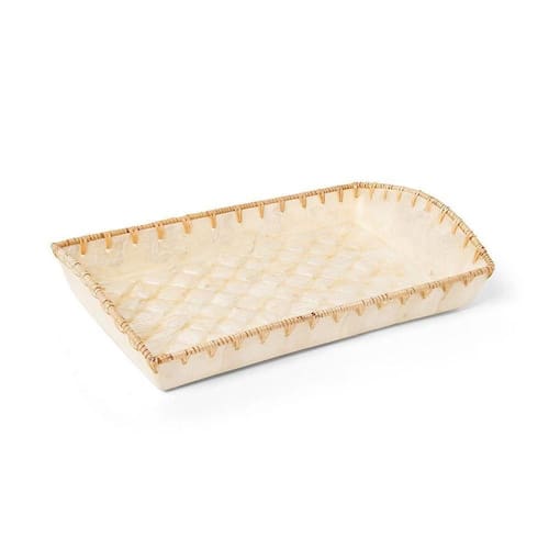 Bandeja Copa E Cia Perla Hope Média Bandeja Copa e Cia Perla Hope Média - Características Gerais do Produto: - Composição: Conchas; Borda de Rattan. - Detalhes: Peça Vendida de Forma Individual.; Design Exclusivo Copa&Cia.; As cores podem sofrer pequenas alterações de cor, variando de monitor para monitor.; Os objetos que ambientam as fotos não acompanham o produto.; As fotos produzidas são apenas como sugestão de uso com as demais peças da coleção. - Cuidados: Armazenar em local seco e arejado.; Limpar o Produto Apenas com Pano Levemente Umedecido; Não podem ser colocados em lava-louças.; Evitar contato com objetos cortantes ou superaquecidos.; Não utilizar solventes, abrasivos ou alvejantes. - Dimensões (cm): Pequena: 24 x 14 cm/ Média: 28 x 18 cm Acompanha o produto: - 1 Peça de Bandeja Garantia: - 7 dias/30 dias contra defeito de fabricação