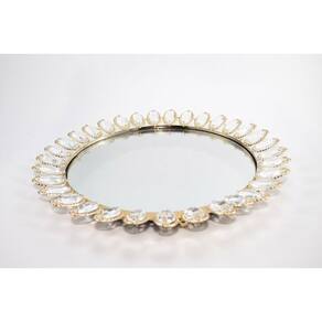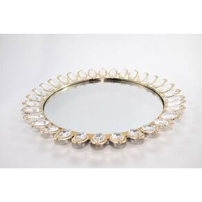 Bandeja Cristal Redonda Versalles Dourada Metal 33 cm Bandeja Cristal Redonda Versalles. Mateial: metal Dimensões: altura: 4 cm - Diâmetro: 33 cm. Dimensões aproximadas do produto. Marca: Amém Decoração Religiosa