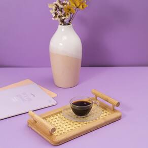 Bandeja de Bambu e Palha Oikos com Alça 25cm Retangular