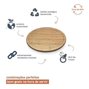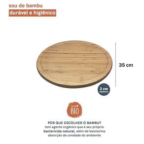 Bandeja de bambu giratória 35cm para servir: esta bandeja giratória de bambu é perfeita para servir com elegância e praticidade em qualquer ocasião. Com um diâmetro de 35cm, ela oferece espaço suficiente para diversos tipos de alimentos e bebidas. Seu design giratório facilita o acesso aos itens servidos, tornando-a ideal para reuniões, festas e jantares. Feita de bambu, um material sustentável e durável, esta bandeja combina funcionalidade com um toque natural e sofisticado.