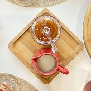 Bandeja de Bambu Square Lyor 17x17x1,5cm Prato Pequeno Quadrado para Servir Casa Eventos.