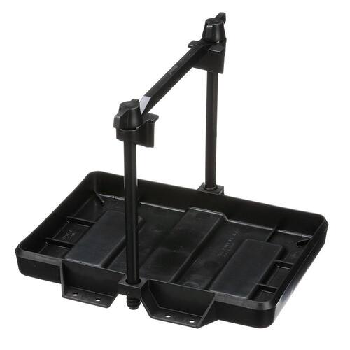 de bateria é feita de plástico preto resistente e não corrosivo. A bandeja inclui uma barra transversal de altura ajustável e