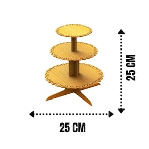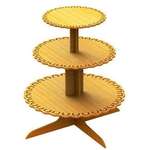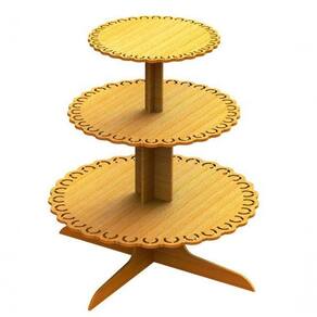 Bandeja De Bolo 3 Andares Em Mdf Material MDF CRU 3 mm Formato Aplicado: Conforme a Imagem - Bandejas de 13, 17 e 25 cm de diâmetro Formato Montado: 1 peça Comprimento: 25 cm Altura: cm Largura: cm Peso Aprox.: 1200 gramas Acabamento: Corte a Laser sem pintura : Desmontada