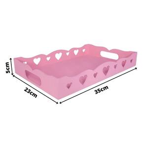 Bandeja De Coração Para Café Da Manhã 100% Mdf (35x23x05) Rosa Bandeja de Coração para Café da Manhã 100% MDF (35X23x05) Rosa - Bandeja de Coração Para quem precisa organizar, e não abre mão da delicadeza, estas Bandejas vão ajudar na organização da sua casa, seja no quarto para guardar maquiagens, cremes, perfume e outros produtos, seja no banheiro organizando os produtos de higiene, na sala com taças, copos, bebidas e várias outras coisas sempre deixando a decoração do ambiente melhor.