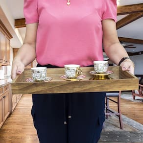 Perfeito para aqueles que necessitam de uma bandeja espelhada elegante servindo ou transportando objetos. Destaca-se por seu design rústico e por sua funcionalidade