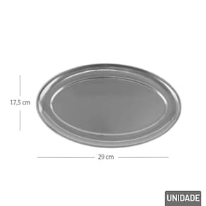 Bandeja de Inox 17,5x29cm Oval Prata A Bandeja de Inox é a escolha perfeita para quem busca sofisticação, praticidade e durabilidade na hora de servir ou decorar. Com um design elegante e moderno, essa bandeja oval é ideal para diversos momentos, como servir bebidas, petiscos, café da manhã ou até mesmo como um item decorativo para mesas, aparadores ou balcões.\nFabricada em aço inoxidável de alta qualidade, essa bandeja combina resistência à corrosão e fácil manutenção, garantindo um produto durável e de longa vida útil. O acabamento prata adiciona um toque de brilho e classe, tornando-a uma excelente opção para festas, jantares, eventos especiais ou para uso diário em sua casa ou escritório.\nEspecificações\nMarca : KEHOME\nTipo de material : Aço Inox\nCores ou Estampa : Prata\nDimensões do Produto : 2 X 17,5 X 29 CM\nDimensões da Embalagem : 2 X 17,5 X 29 CM\nPeso Bruto (Gramas) : 0.105 Marca: Não Informado