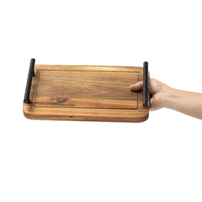 Multiuso: pode ser usada para servir comidas e bebidas, organizar objetos ou exibir itens de decoração.Versátil: combina com diversos ambientes, como cozinha, quarto, sala e banheiro.Prática: alças de metal oferecem mais suporte ao manuseio e transporte, ideal para servir um café da manhã especial.Decorativa: o tom natural da acácia adiciona um toque rústico e elegante aos ambientes.Resistente: feita em acácia, com um tom marrom caramelado que destaca sua durabilidade e beleza.